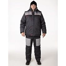 Костюм рабочий зимний мужской "Интегратор Плюс" (куртка+п/к) сер./черн./красный