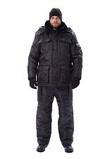 Экипировка работников охранных структур – куртка с утеплителем удлинённая. Отложной воротник отстёгиваемый (искусственный мех), отстёгивающийся капюшон. Погоны с кнопочной застёжкой. Куртка застёгивается на молнию (скрытого типа), по линии пояса – кулиска. Имеются пара карманов на груди, снабжённых клапанами, и пара по бокам. Рукава заканчиваются манжетами на эластичной ленте.